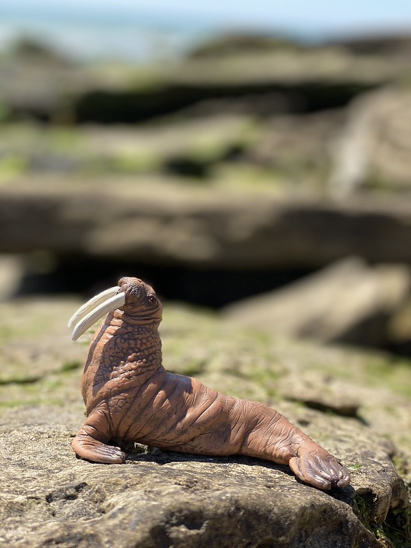 C’est au large de cette plage que nous avons pu voir passer des phoques. Une belle rencontre qui a inspiré les filles pour imaginer des histoires avec la figurine de morse dans ce superbe décor de rochers.