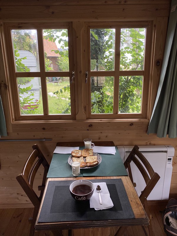 De nombreux oiseaux nichent dans les grands arbres qui poussent tout autour du chalet. C’est eux qui nous ont réveillé et nous n’avons pas eu besoin de réveil matin.