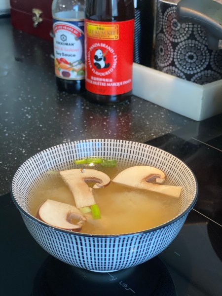 - Faites dissoudre la pâte de miso dans le bouillon.