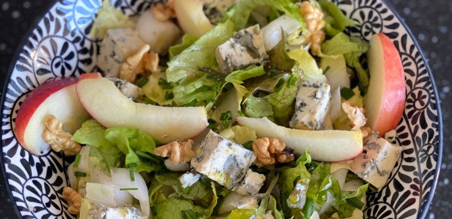 - Ajoutez les noix concassées, la fourme d’Amber coupée en cubes, la ciboulette ciselée, la vinaigrette, mélangez, c’est prêt !