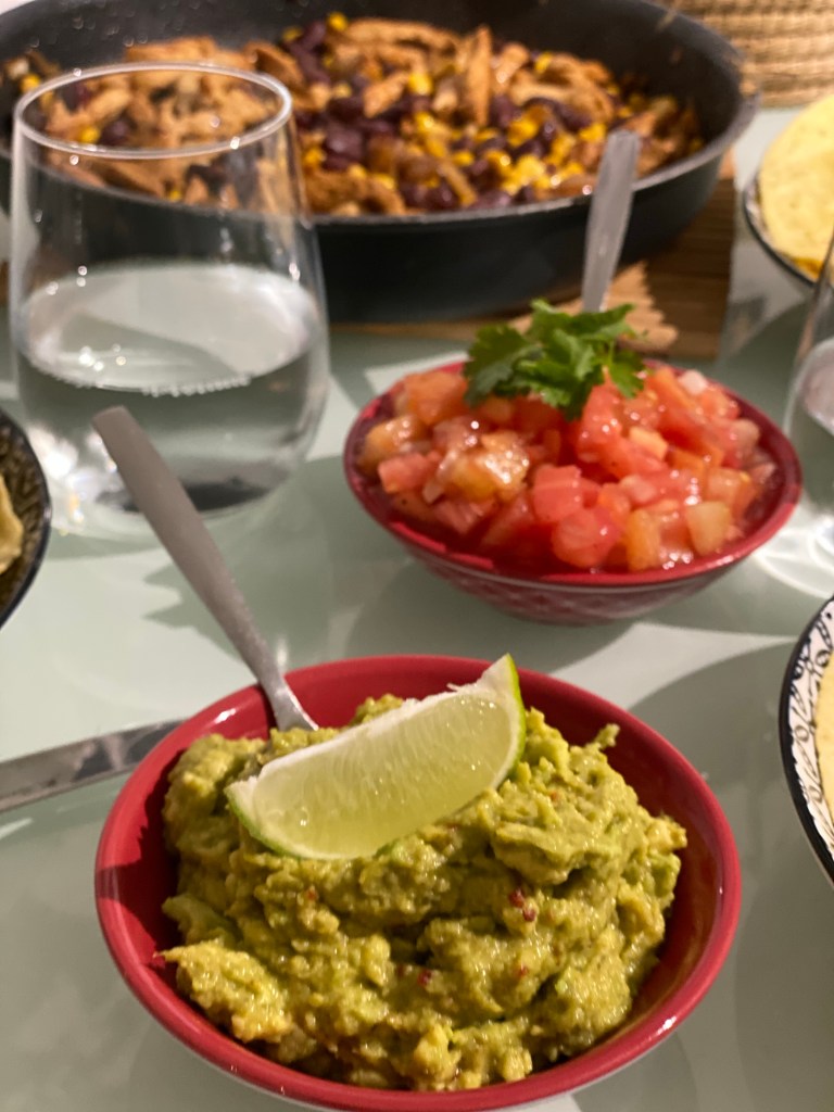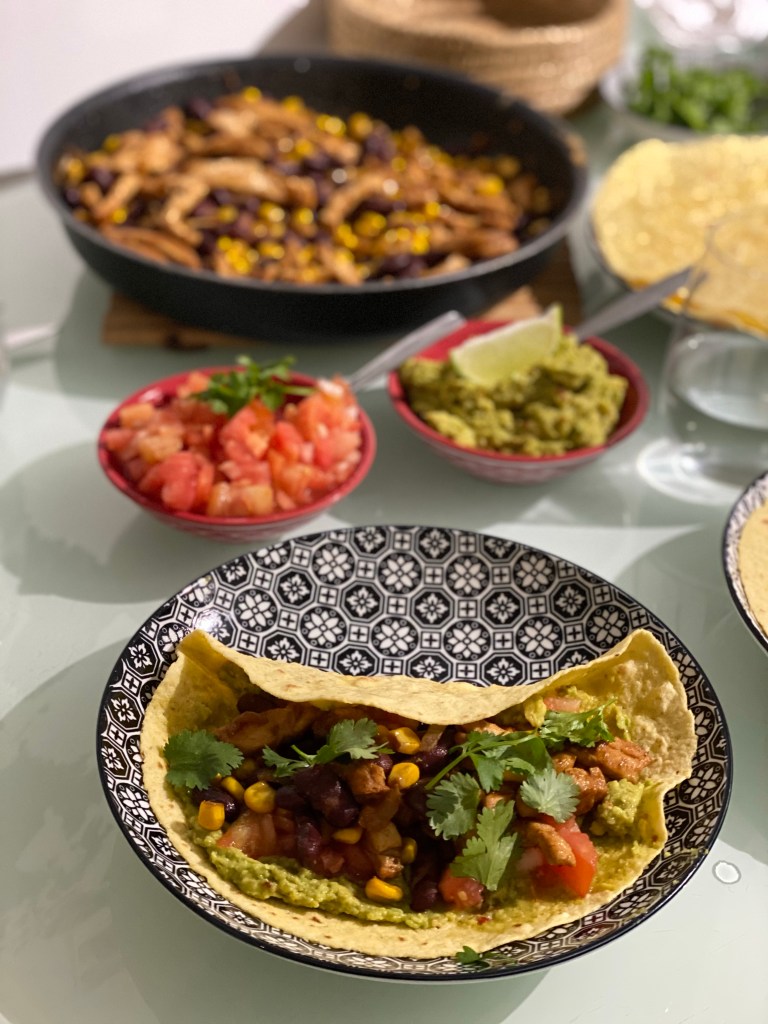 - Garnissez-les en étalant le guacamole à l’avocat, du mélange poulet-maïs-haricot, vous pouvez également ajoutez un peu de sauce salsa sur le dessus. Parsemez de coriandre.