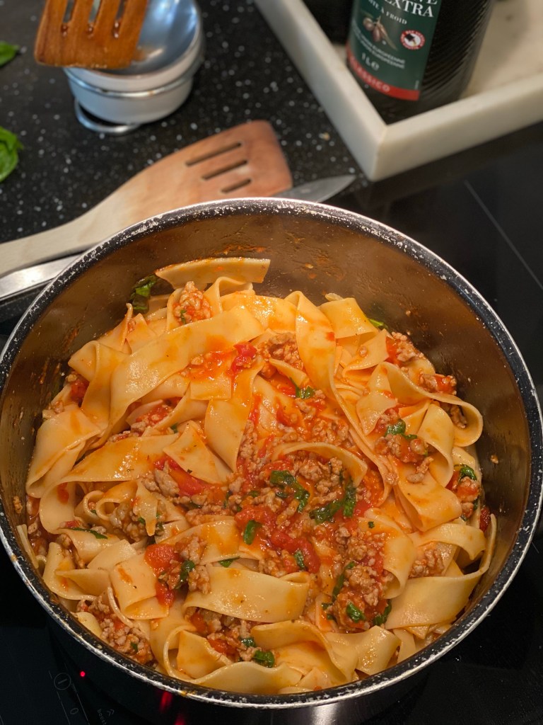 Cette recette de pappardelles al ragù est très simple à préparer. Ce qui fait sa réussite c’est la sauce du ragù. Pour que le résultat soit agréable, il faut que cette sauce soit fluide afin que lorsqu’on l’ajoute aux pappardelles celles-ci n’absorbent pas tout le liquide.
