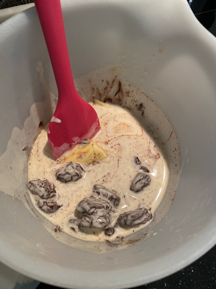 Pour créer ce gâteau, j’ai tout d’abord préparé une ganache au chocolat noir (la veille).