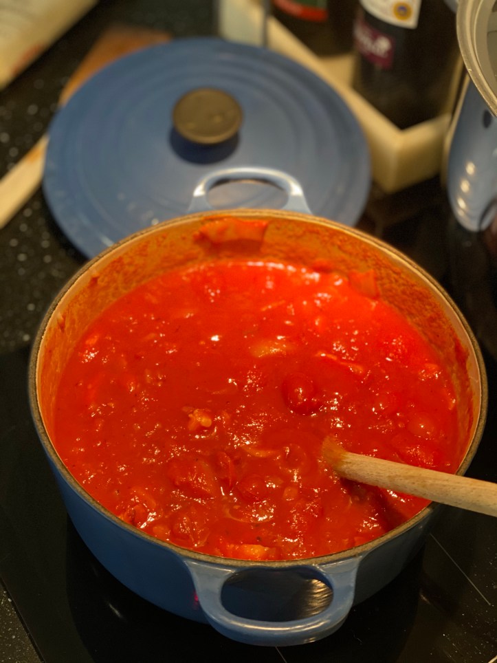 - Laissez mijoter à feu doux pendant 20 minutes le temps que la sauce épaississe. Ajuster le goût en ajoutant du sel et du poivre.