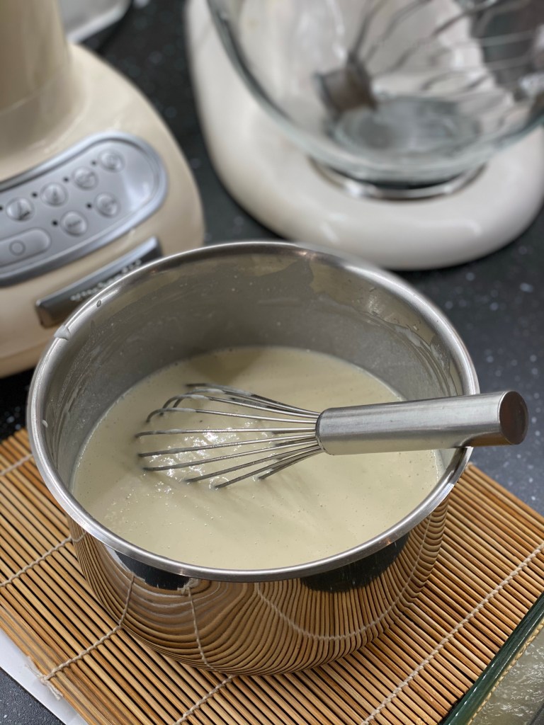 - Pendant ce temps préparer la béchamel. Dans une casserole chauffée à feu doux. Faites fondre le beurre. Ajoutez la farine et mélanger au fouet. Lorsque le mélange est homogène, verser progressivement le lait. Arrêtez la cuisson lorsque la béchamel est fluide.