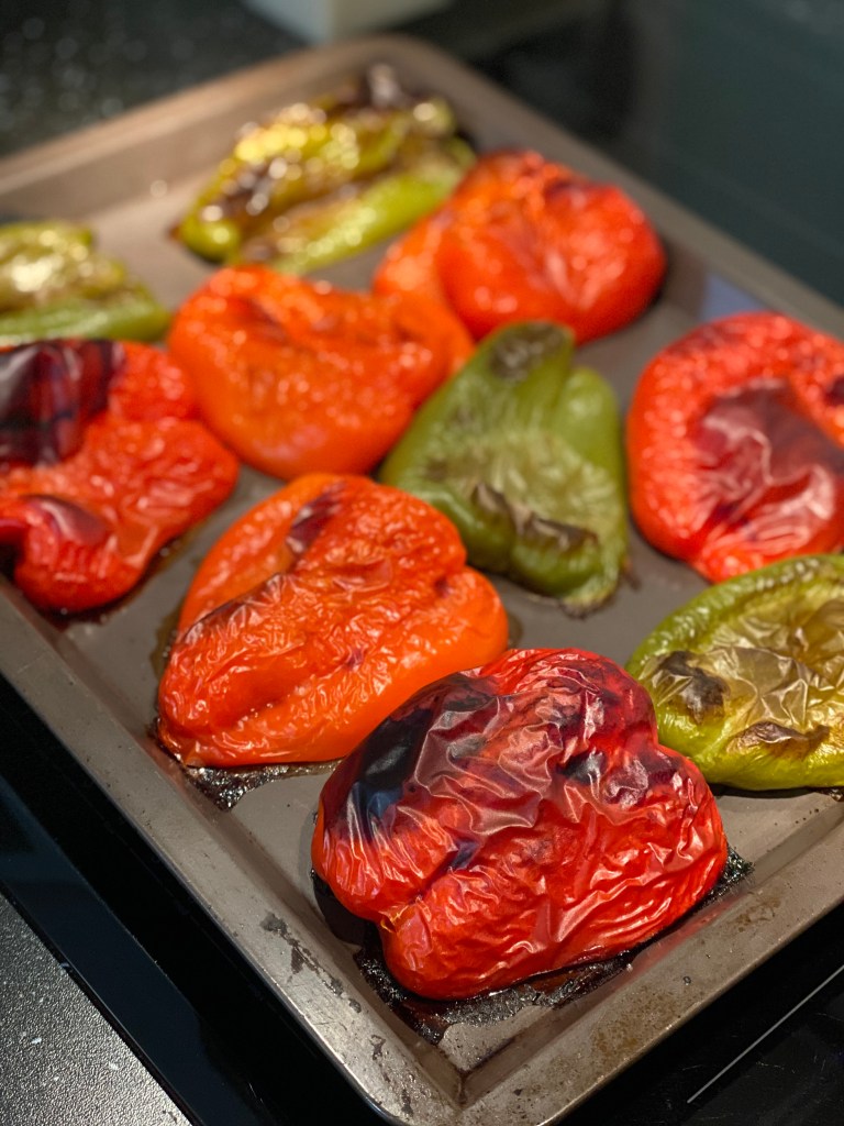 2. Déposez-les sur une plaque de cuisson recouverte de papier sulfurisé. Enfournez sous le grill et laissez cuir jusqu’à ce que la peau noircisse.