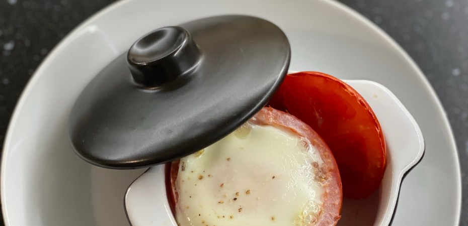 - Déposez chacune des tomates dans une mini cocotte avec les chapeaux à côté.