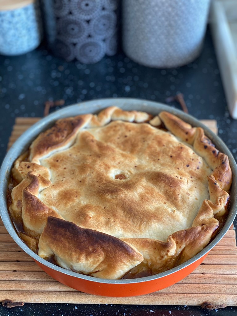- Démoulez votre tarte en plaçant un grand plat sur le dessus puis en retournant le tout d’un coup sec. Attention au jus qui va couler au démoulage.