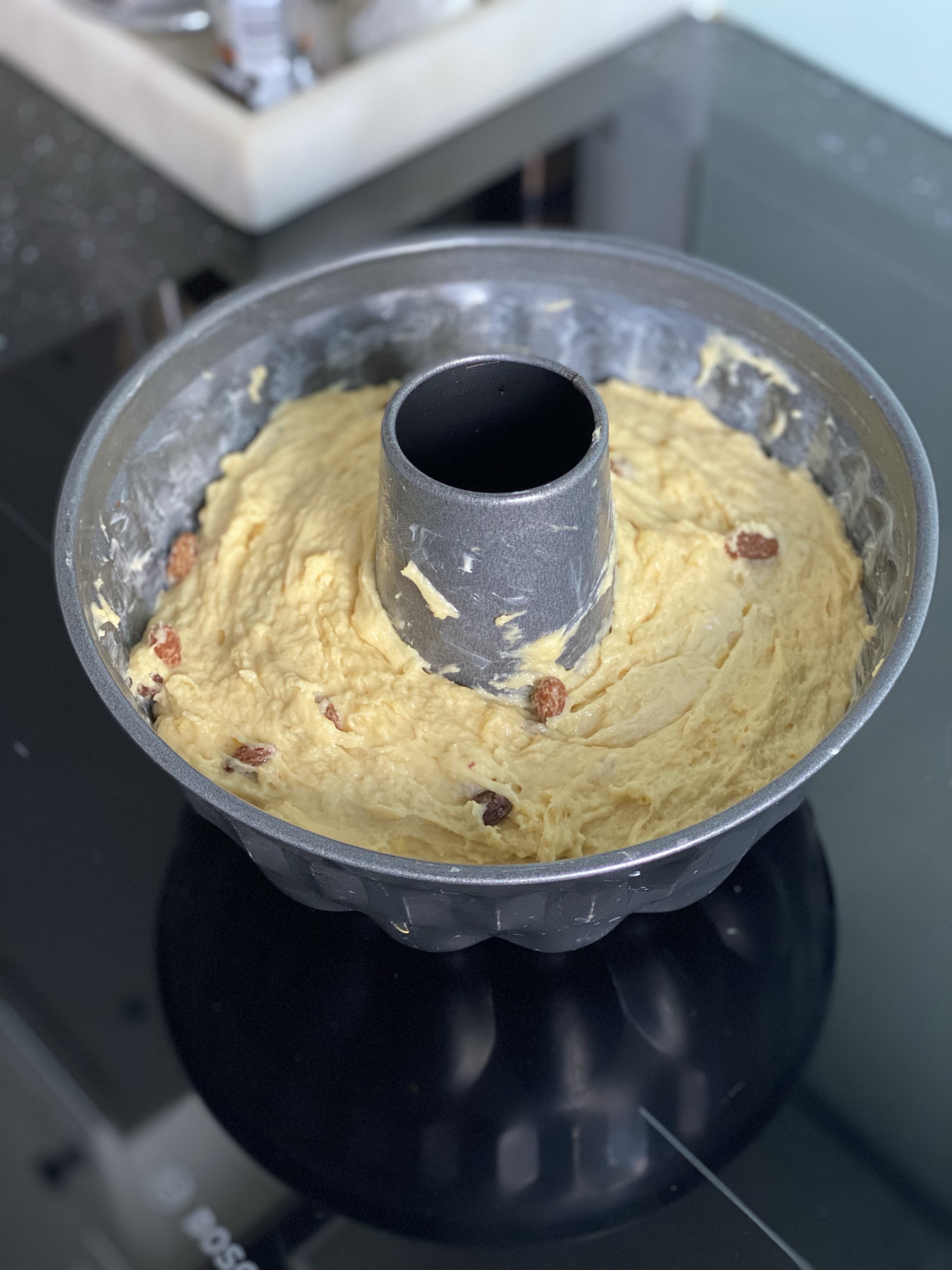 - Si le dessus du kouglof se colore de vite protégez-le à l’aide d’un morceau de papier sulfurisé.