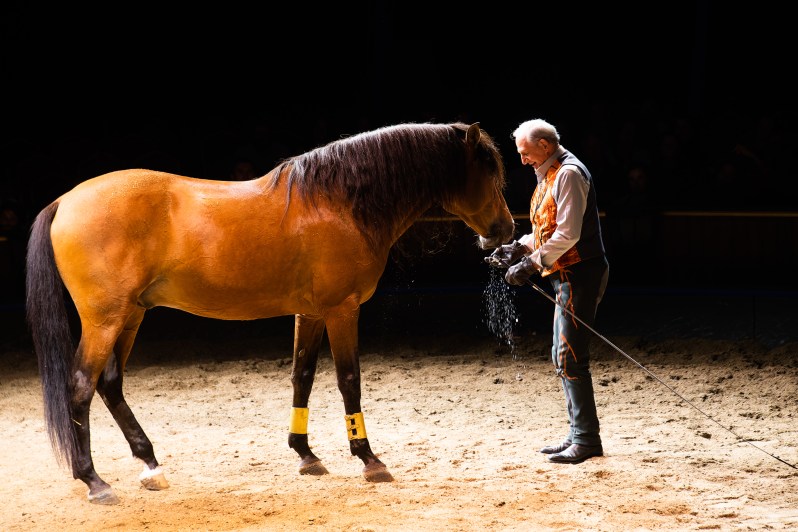 Parmi tous les numéros du spectacle, ceux que j’ai préféré sont ceux de Maud, Alexis, Stephan avec leurs chevaux. Il y a une vraie osmose entre les Gruss et leurs chevaux. Ils réalisent ensembles des choses très émouvantes et les photos de leurs numéros sont toujours superbes. Regardez vous-même !