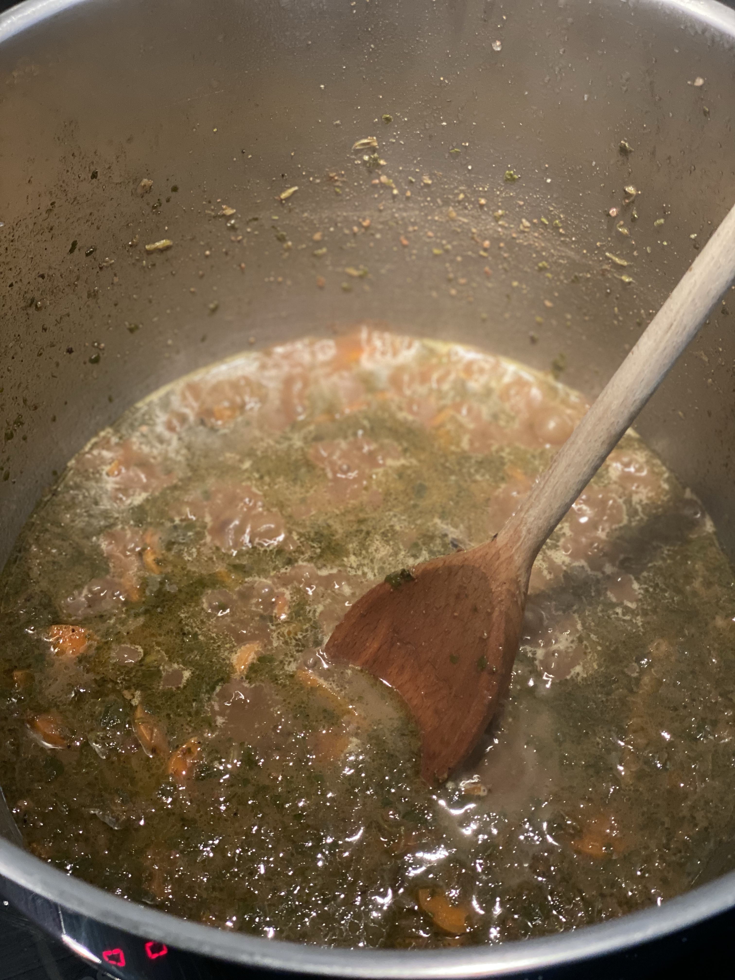 - Émincez les oignons. Faites-les revenir dans une cocotte avec l’huile d’olive. Ajoutez les épices (gingembre, cannelle, ras el hanout) et le sucre en poudre.