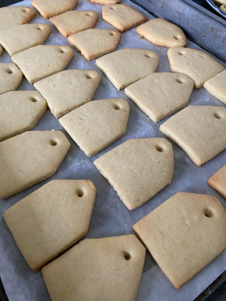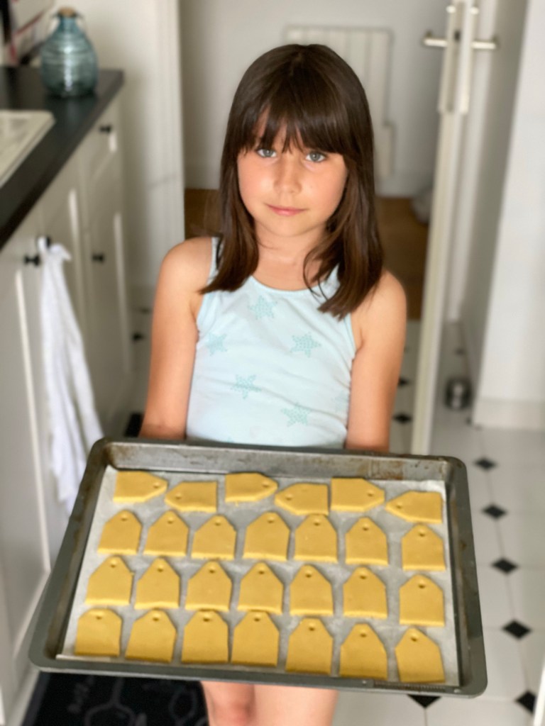 4. A l’aide d’une paille faites de petits trou afin de pouvoir passer la ficelle.Préchauffez votre four à 180°C et enfournez pour 12 minutes.