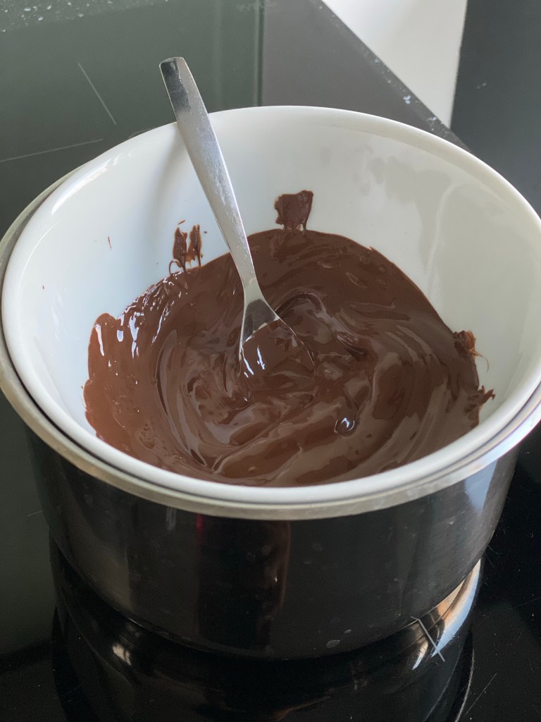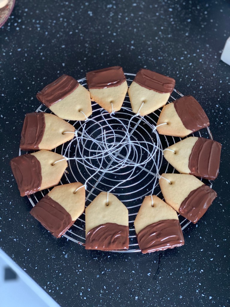 5. Une fois que vos biscuits seront froids, faites chauffer le chocolat et trempez les biscuits dedans. Laissez les sécher.