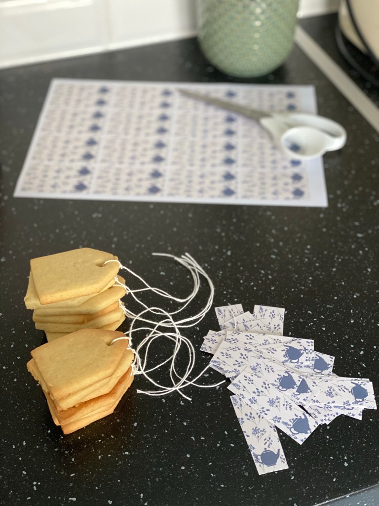 6. Préparez les petits étiquettes et les ficelles oui attachez ces dernières aux petits gâteaux.