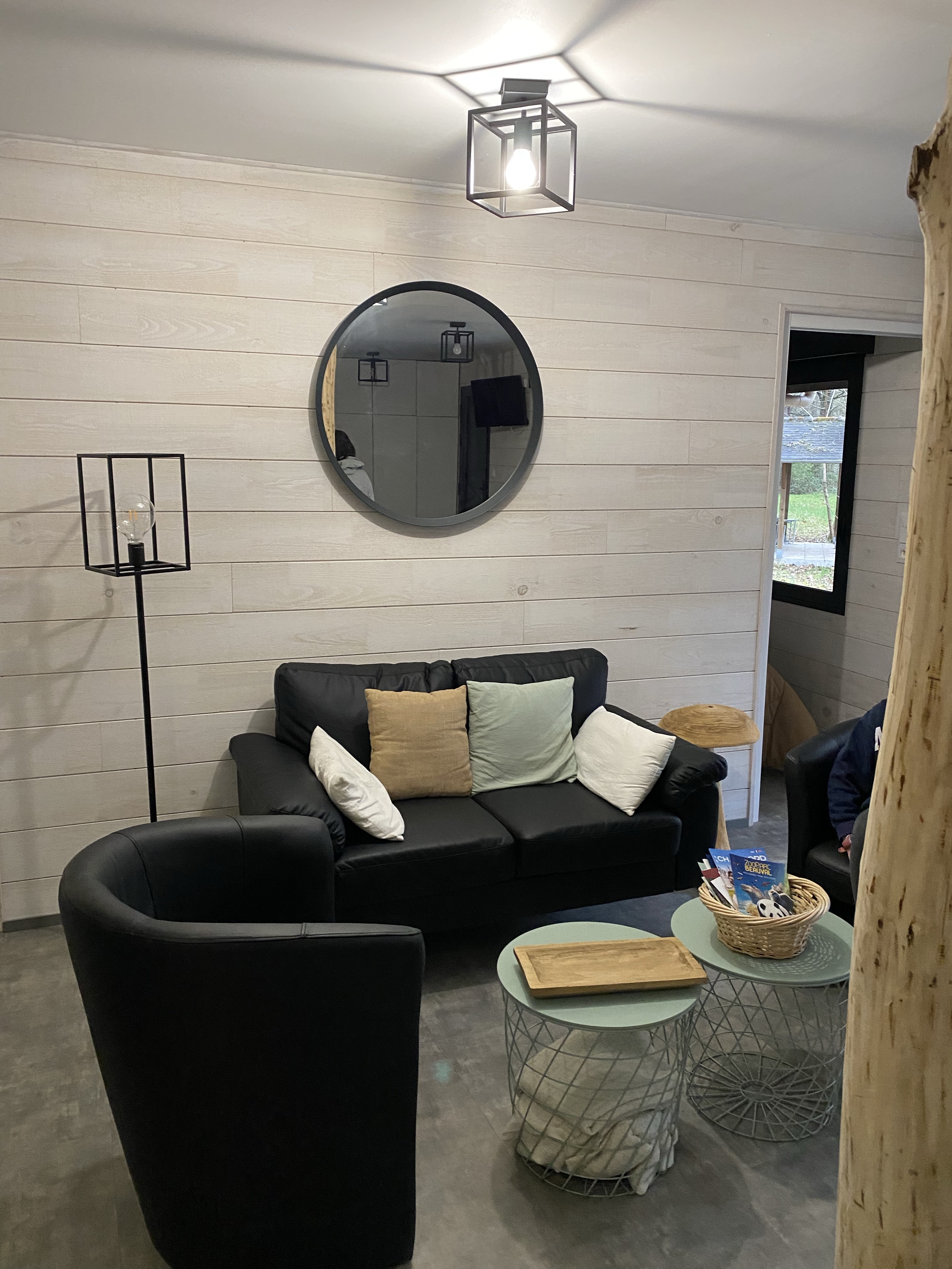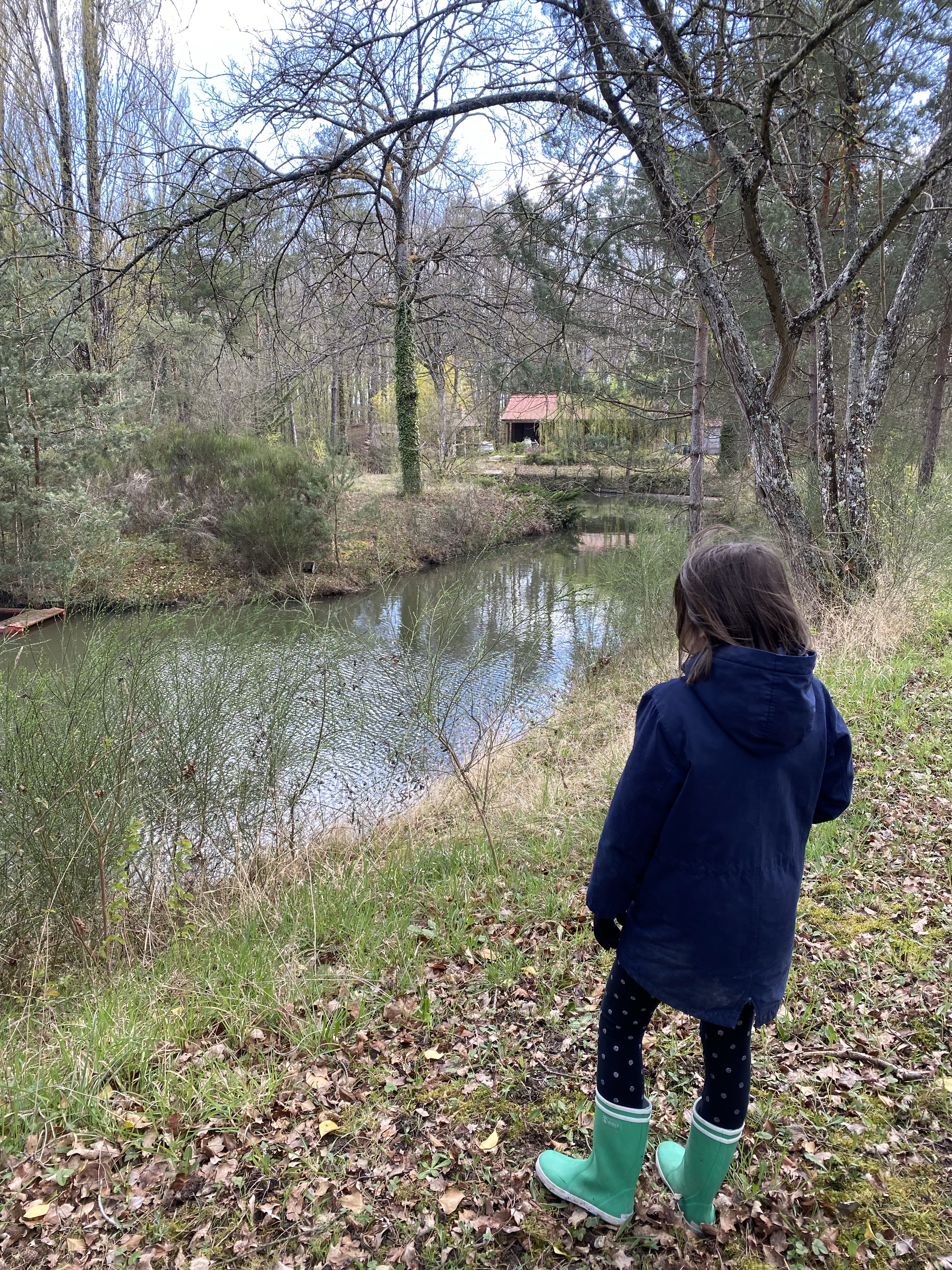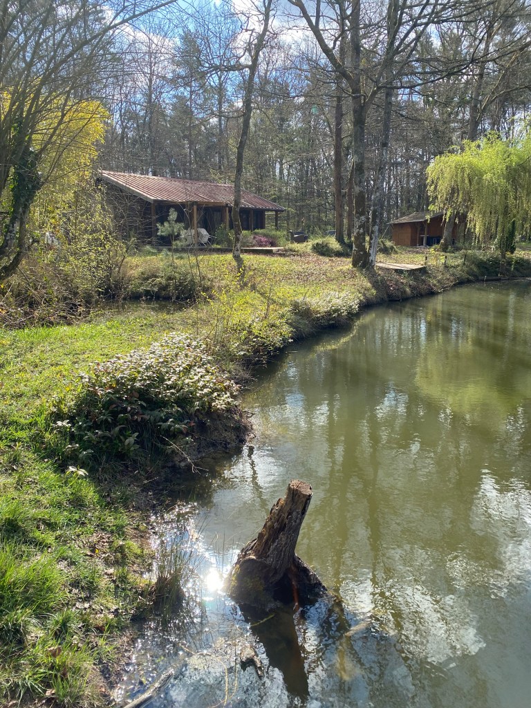 Pour ce séjour, nous avons choisi un hébergement insolite avec ce chalet entouré d’arbres et bâti au bord d’un étang.