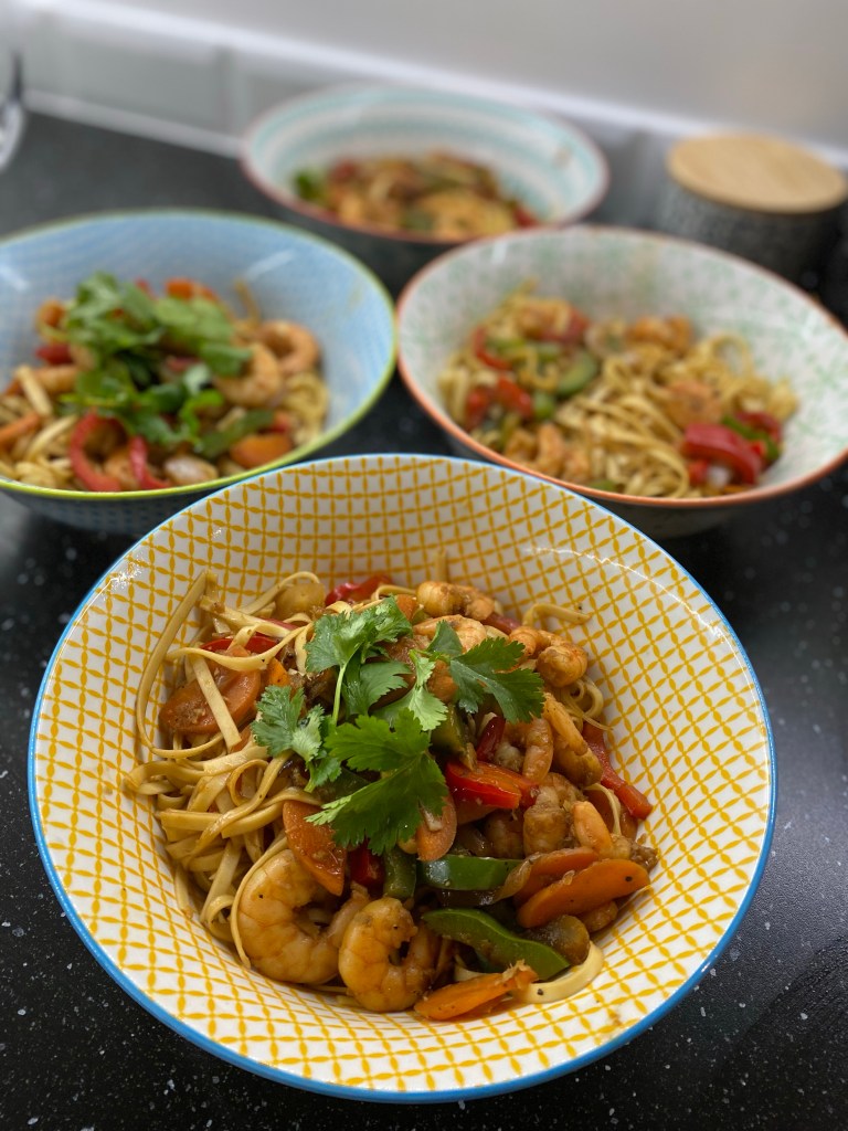 Aujourd’hui on s’évade en Asie avec une recette rapide et facile à préparer. Les nouilles sautées aux crevettes sont réalisées à base de nouilles chinoises aux oeufs. Le gingembre et la coriandre apportent beaucoup de saveurs à ce plat qui vous fera voyager dans vos assiettes.