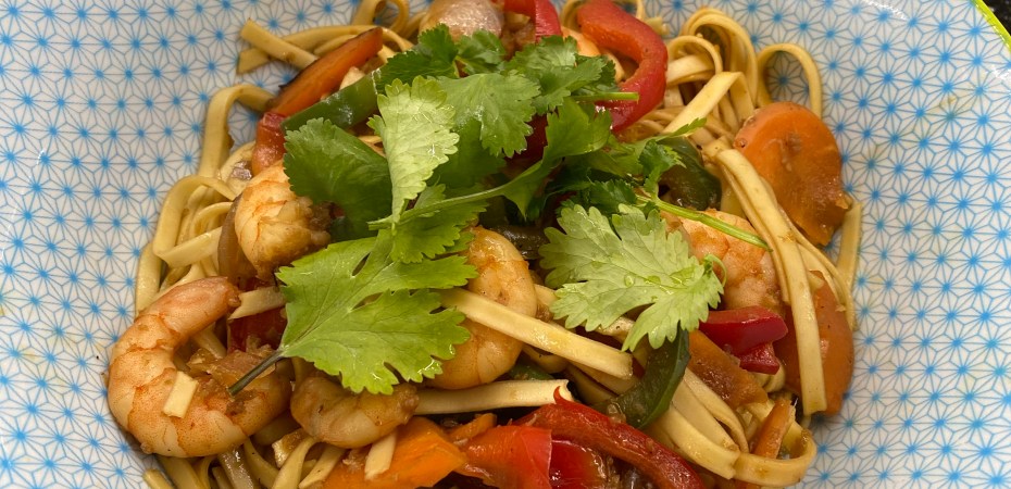 Aujourd’hui on s’évade en Asie avec une recette rapide et facile à préparer. Les nouilles sautées aux crevettes sont réalisées à base de nouilles chinoises aux oeufs. Le gingembre et la coriandre apportent beaucoup de saveurs à ce plat qui vous fera voyager dans vos assiettes.