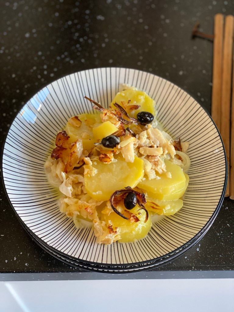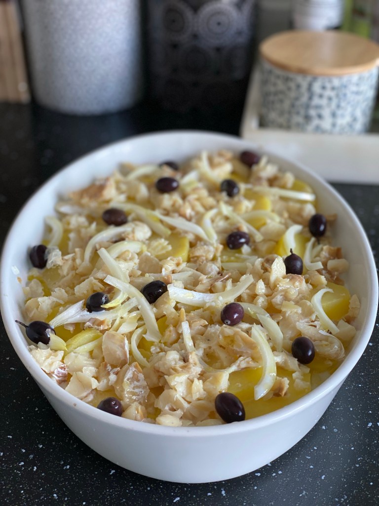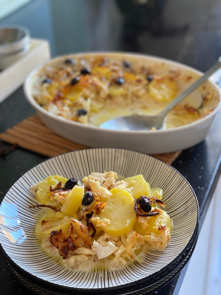 Après notre séjour à Lisbonne, j’ai eu envie de refaire l’un des plats qui nous avez tant plu lors de notre balade dans le quartier de l’Alfama. J’ai donc trouvé de la morue séchée et chercher comment la préparer au four. Avec quelques ajustements, j’ai enfin retrouvé le plat que je voulais reproduire.
