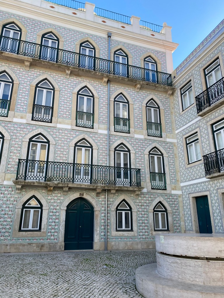A Lisbonne, les azulejos sont des ornements qui ornent les façades de maisons et d’églises. On en trouve aussi dans les jardins et sur les fontaines.