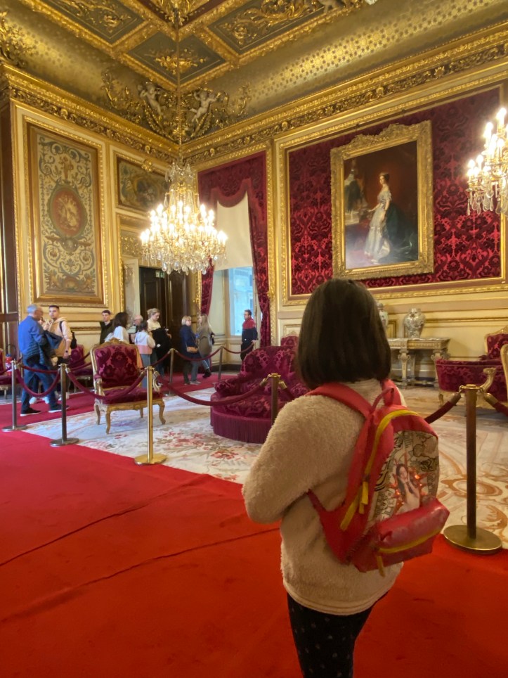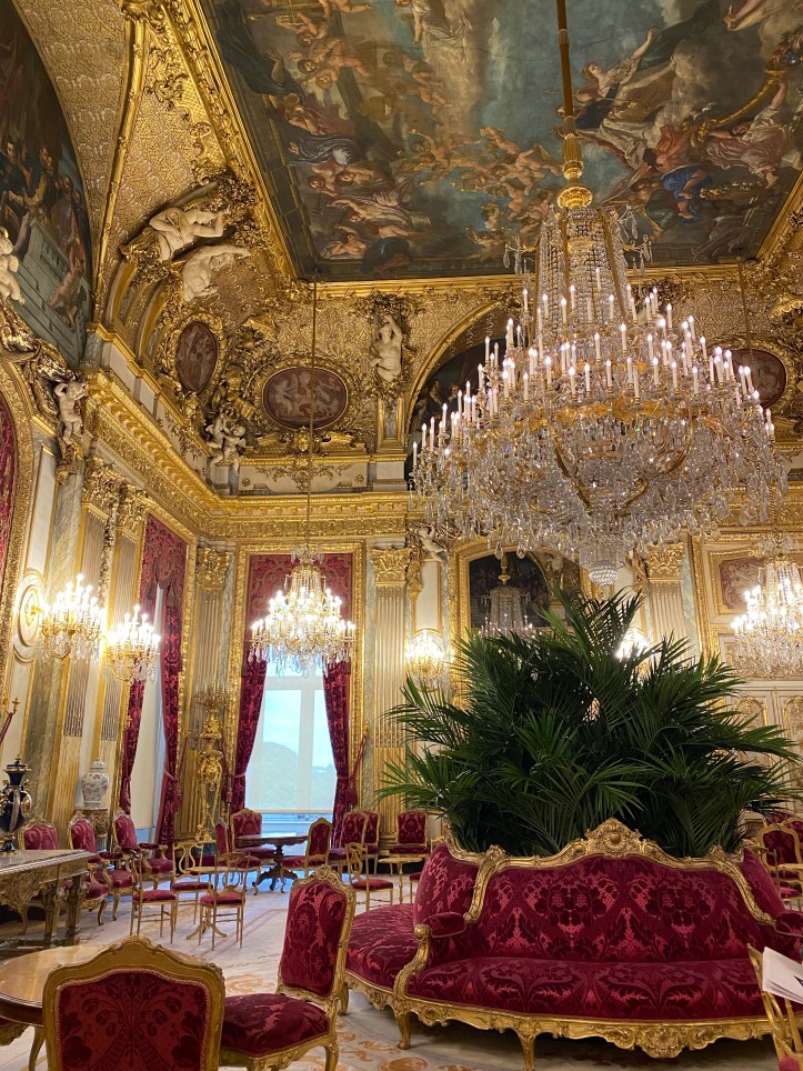 C’est par cette galerie que l’on débute la visite des appartements dit d’apparat. C’est aussi là qu’étaient accueillis les invités. Cet espace amenait à l’origine directement aux grands salons mais pour notre visite, nous sommes passés par le petit appartement et sommes entrés dans le salon de famille.