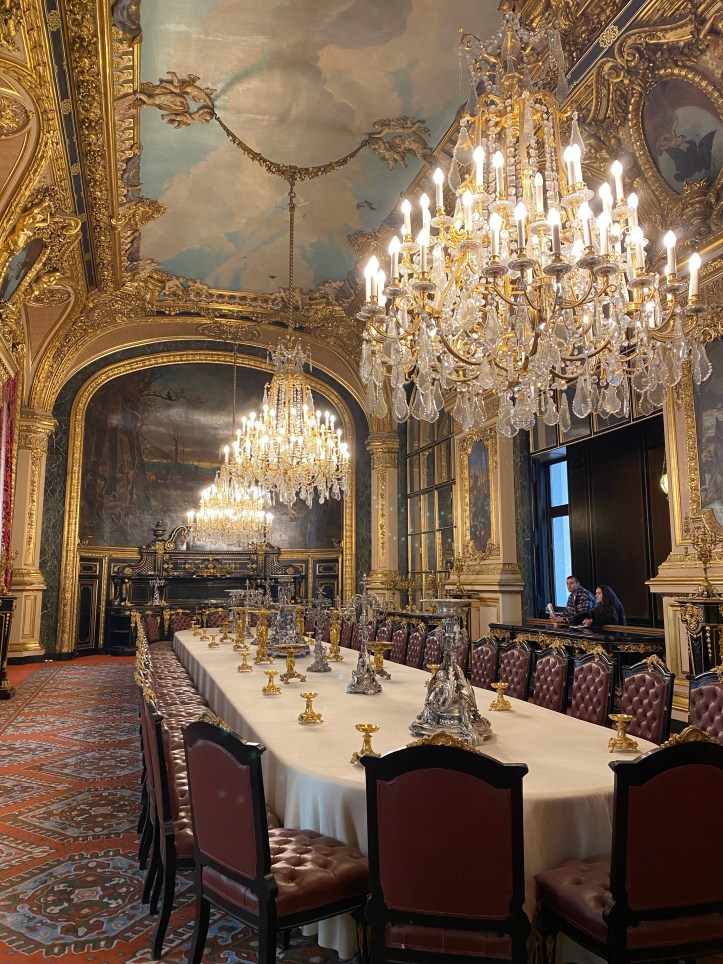Cette salle à manger aux dimensions exceptionnelles pouvait accueillir des dîners réunissant une quarantaine de convives.