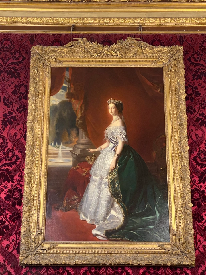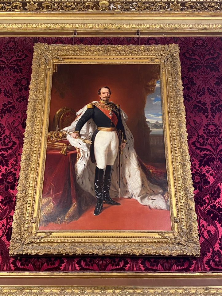 Les portraits de l’impératrice Eugénie et de l’empereur Napoléon III trônent face à face dans le salon qui mène à la salle à manger.