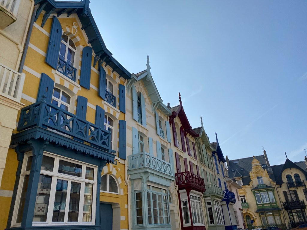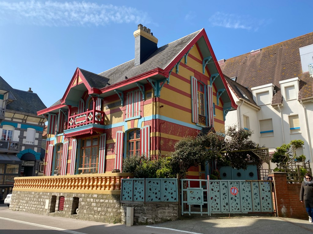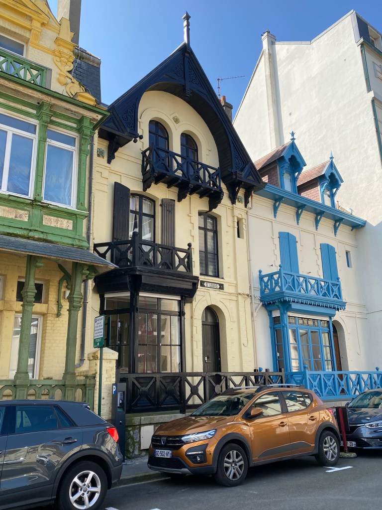 Nées au siècle dernier, ces charmantes demeures de style anglo-normand portent toutes des noms originaux comme Tilounine, Chasse-Marée, Romance, De Sonis, Lamoricière, L’Izba, Tilounine, Mes Loisirs, Sainte Sophie. Elles arborent très souvent des couleurs chatoyantes et des rayures verticales. Mes préférées sont La Frégate et Notre-Dame des Dunes.