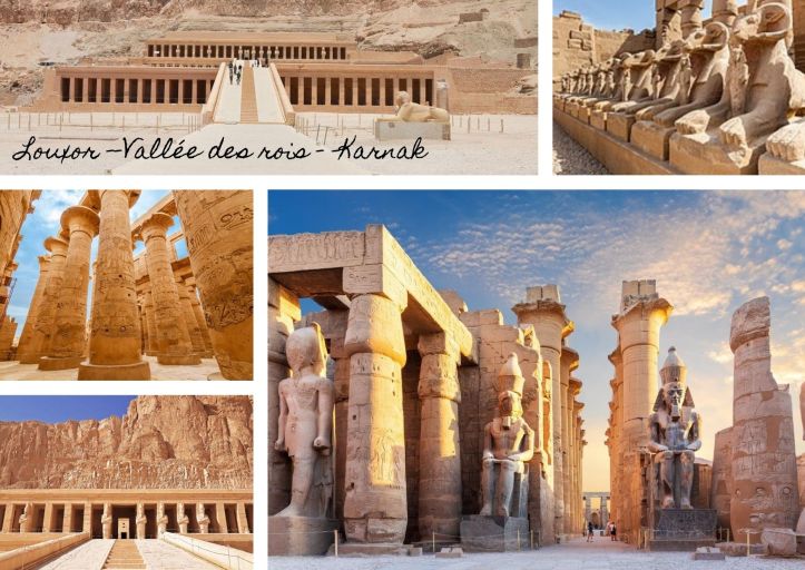 Visite de la vallée des rois. Arrêt aux Colosses de Memnon. Visite du temple de Karnak. Visite du temple de la reine Hateshpsout.