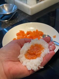 - Pour former vos Onigiris, humidifiez généreusement vos mains (utilisez un saladier d’eau).