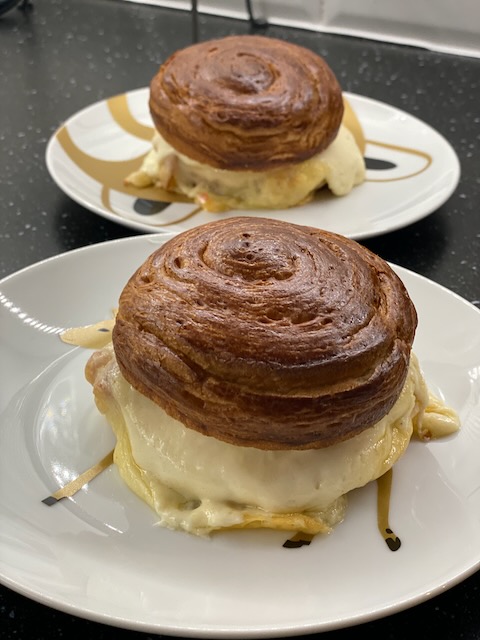 C’est un petit pain rond et feuilleté qui a la texture d’un croissant et la forme d’un burger. On l’aime pour son croustillant et son goût. Aujourd’hui on le transforme comme un croissant fourré au jambon une variation gourmande du croque-monsieur pour un repas rapide et facile à préparer.