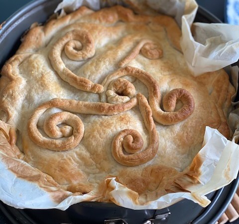 - Surveillez bien la fin de la cuisson. Quand la surface de la tourte est bien dorée retirez-la du four. Démoulez-la sur un plat à tarte pour la déguster bien chaude.