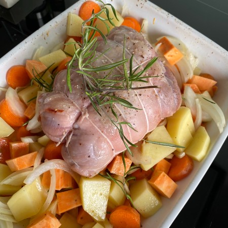 Rôti d’agneau au romarin et légumes de saison